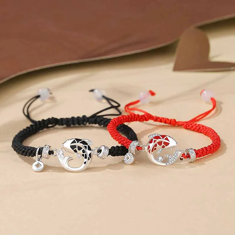 Mythstone Silver Luck Koi Fish Braided String Bracelet
