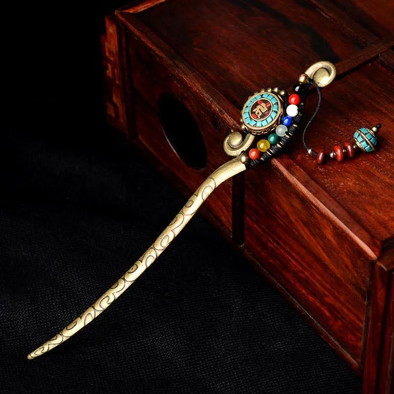 Mythstone Tibetan Turquoise Agate Protection Hairpin Decorations